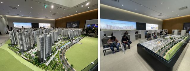 대형모형도 및 단지 배치 설계도가 마련된 1층 내부. = 박선린 기자