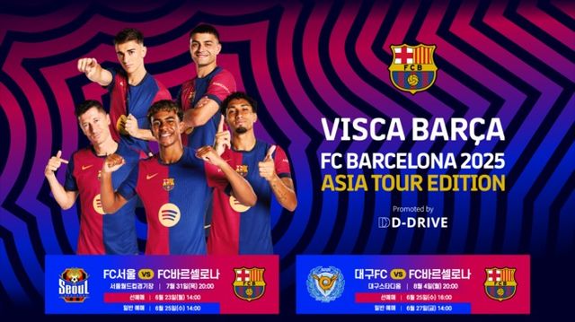 서울월드컵경기장에서 오는 7월 31일(목) FC서울과, 대구스타디움에서 8월 4일(월) 대구FC와 맞붙는 두 경기는 FC바르셀로나의 1군 선수단이 총출동해 화려한 기량을 펼칠 예정이다. 이번 투어는 ㈜디드라이브가 공식 주최사로 나서며, 서울 경기는 제너시스BBQ와, 대구 경기는 대구광역시와 각각 공동 주최한다.
