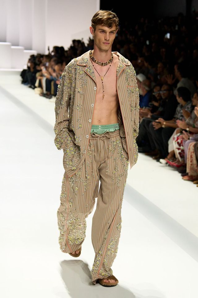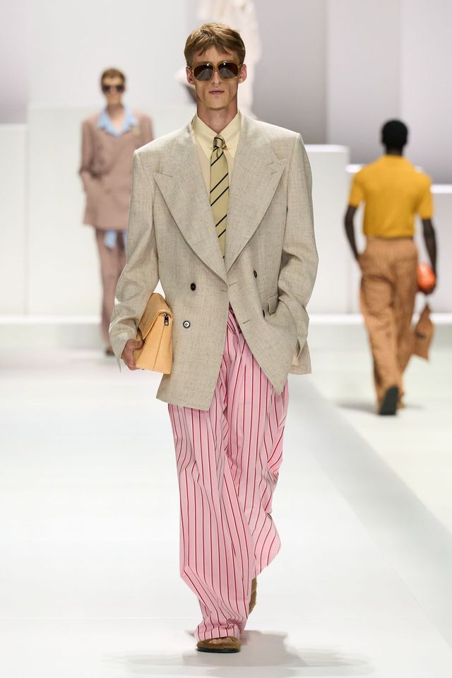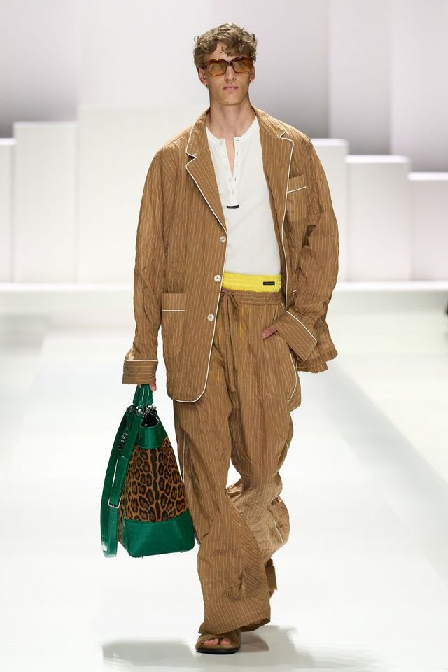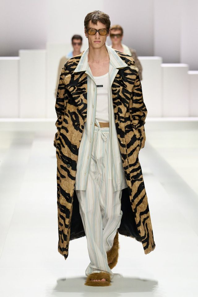 돌체앤가바나는 에겐남과 테토남을 모두 불러 모았습니다. 돌체의 파자마 보이들은 침실 밖으로 나온 홈웨어의 색다른 변신을 보여줬죠. 의도적으로 구겨진 파자마 셋업과 흐르는 실크 소재와 만난 단정한 테일러링은 서정적이고 편안한 분위기를 자아냈습니다. 이에 대비되는 과감한 호피 무늬와 풀어 헤친 재킷들, 팬츠와 트렁크의 레이어링은 관능적인 돌체앤가바나식 테토남을 보여줬죠. 드레시한 매력까지 갖춘 파자마 룩. 이쯤 되면 다음 시즌 키워드는 '편안한 럭셔리' 아닐까요?