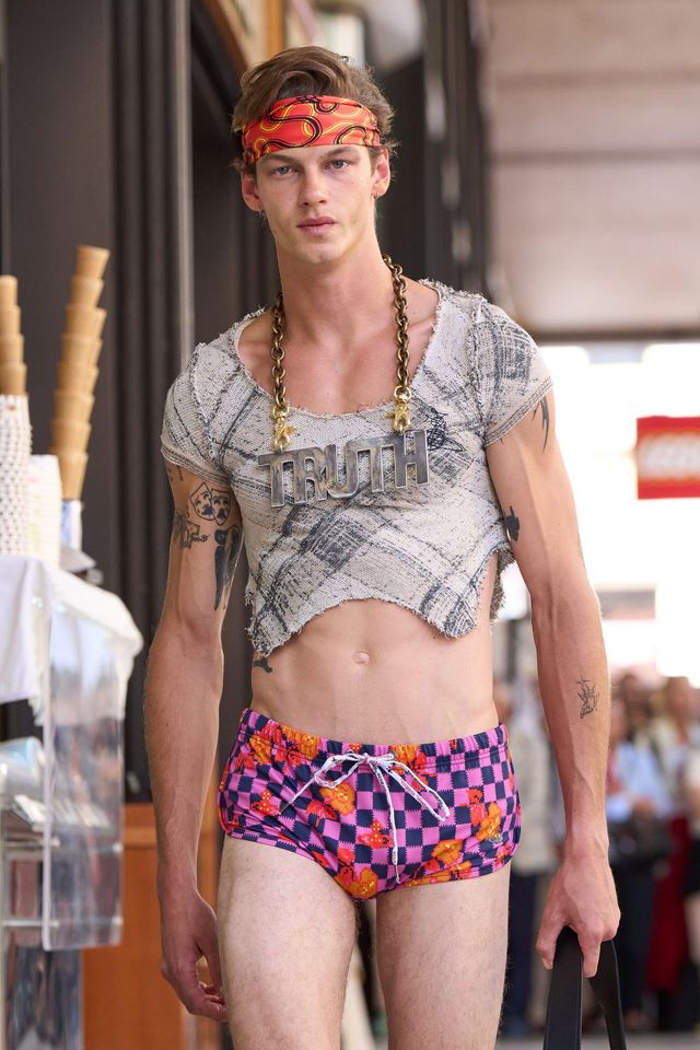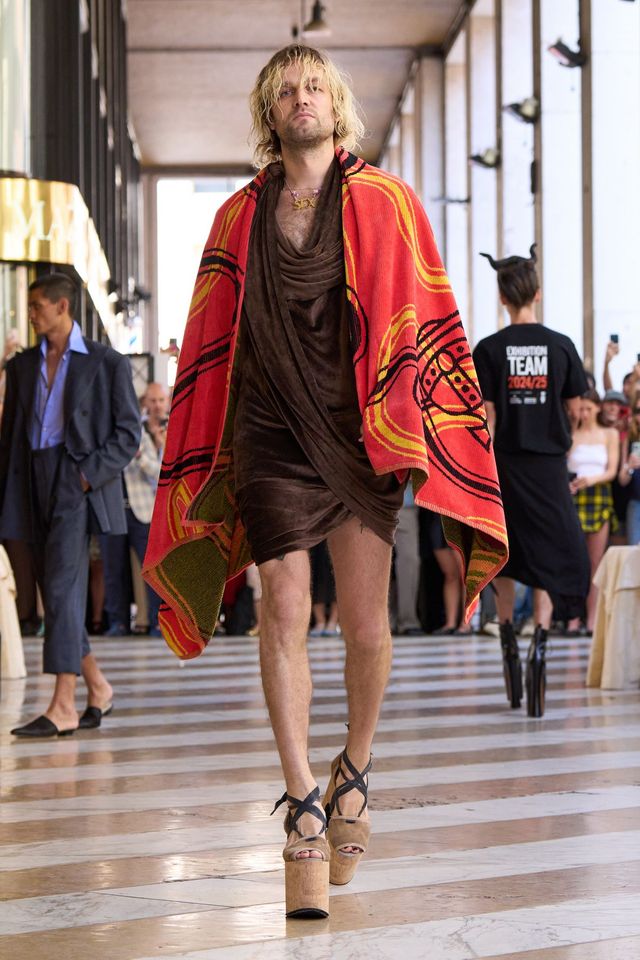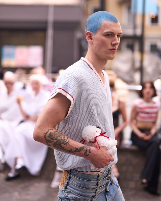 무려 8년 만의 복귀 소식입니다. 2018 SS 시즌 이후 패션위크 무대에서 사라졌던 비비안 웨스트우드 쇼가 돌아왔습니다. 세상을 떠난 비비안을 대신해 남편 안드레아스 크론탈러가 이끈 이번 컬렉션은 댄디함과 향수를 일으키는 그래니 스타일이 결합된 강렬한 비주얼을 선보였죠. 테토향 가득한 모델들의 체형이 돋보이는 구조적인 테일러드 실루엣, 이와 대비되는 드레이프 드레스, 여기에 아찔한 힐 슈즈까지! 젠더와 장르의 경계를 능청스럽게 넘나들었습니다.
