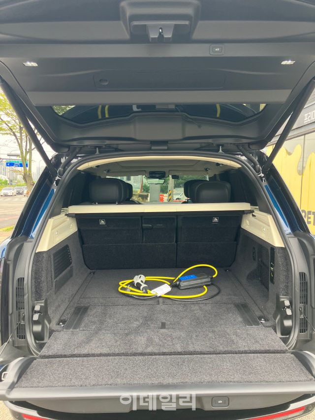| ‘올 뉴 레인지로버 스탠더드휠베이스(SWB) P550e 오토바이오그래피’ 트렁크 공간 (사진=정병묵 기자) |