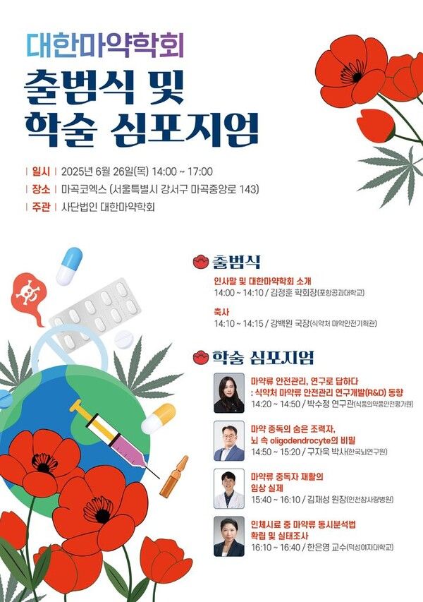 뉴시스 보도에 따르면, 대한마약학회는 26일 '세계 마약 퇴치의 날'을 맞아 '대한마약학회(The Korean Society of Drug Science·KSDS)'의 첫 창립을 기념하는 출범식 및 학술 심포지엄을 개최한다고 밝혔다.