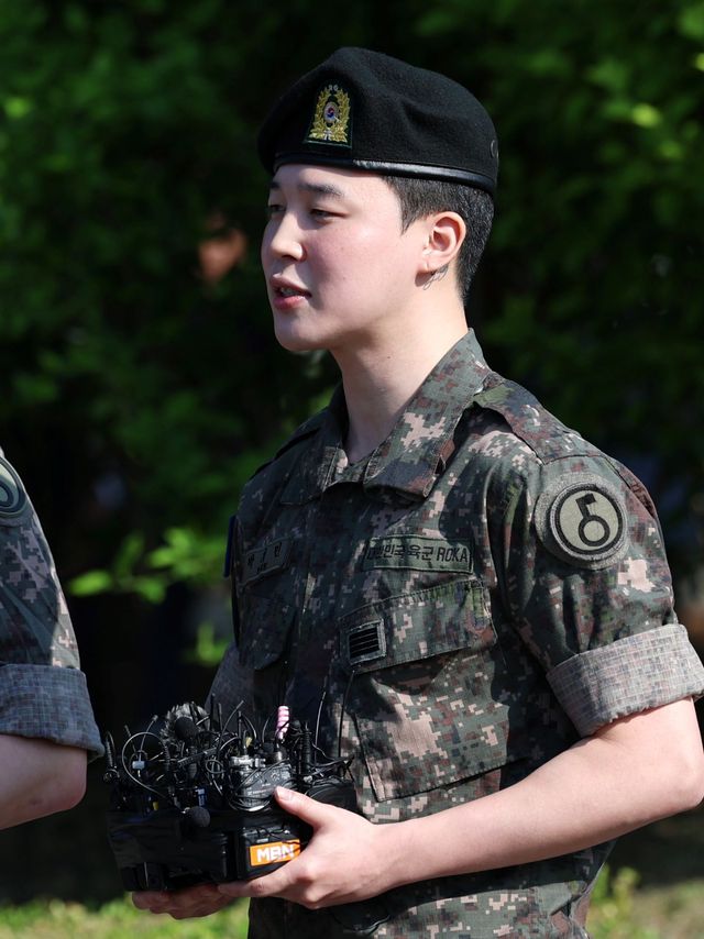전역 인사를 하고 있는 방탄소년단 지민. / 뉴스1