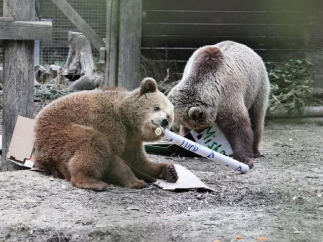 동물원을 운영하는 보호단체 와일드우드 트러스트 관계자는 “곰들이 잔치를 벌이고 뛰어놀고 밧줄을 잡아당기기도 했다”라고 전했다.