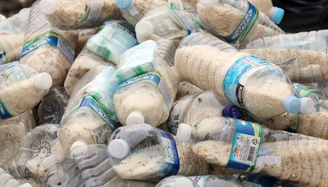 쌀이 든 페트병 모습. 기사와 직접적인 관련이 없는 자료 사진입니다. 경찰에 따르면 A 씨 등은 27일 오전 1시 6분쯤 인천시 강화군 하점면 망월돈대에서 쌀, 1달러 지폐, 성경 등이 담겨 있는 페트병 1300여 개를 바다에 띄우려고 시도한 혐의를 받는다. 당시 인근 군부대가 해안을 감시하던 중 이들의 범행 시도를 확인하고 경찰에 신고한 것으로 알려졌다. / 연합뉴스
