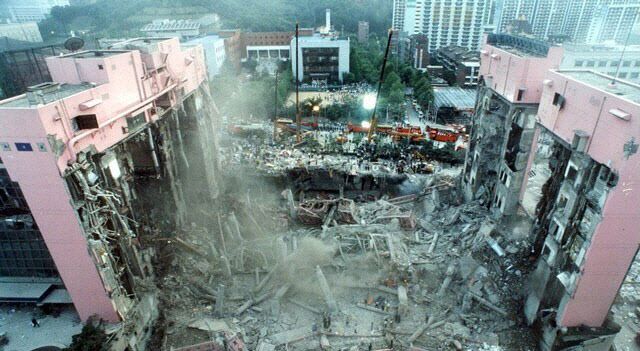 그날 오후 5시 57분. 백화점 건물이 5층 왼쪽부터 아래로 기울면서 연쇄적으로 무너져내렸다. 2개 동 가운데 북쪽 A동이 완전히 붕괴되기까지는 단 20초가 걸렸다. 이 사고로 무려 502명이 사망했고, 937명이 부상을 입었다. 실종자는 6명이었다. 사상 최악의 단일 인명 피해 사고인 ‘삼풍 백화점 붕괴 참사’다. 아이러니하게도 회의를 하던 임원진들은 모두 다른 동에 있었기에 생존할 수 있었다.