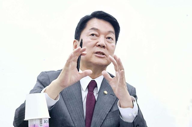 안철수 국민의힘 의원(경기 성남시 분당구갑)이 18일 대구 수성구 범어동 국민의힘 대구시당에서 간담회를 열고 취재진 질문에 답하고 있다. / 뉴스1