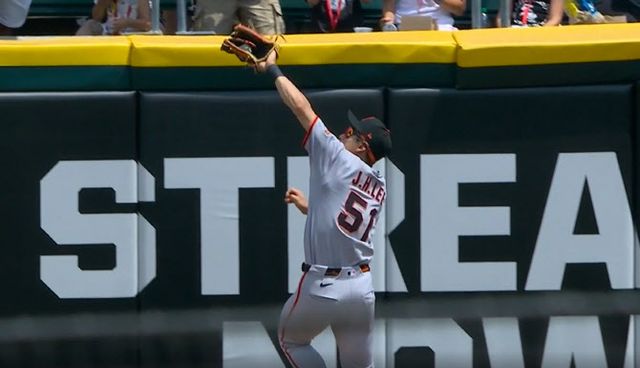 방망이는 침묵했지만 수비에선 멋진 모습을 보여줬다. 2회말 1사 1, 2루에 몰린 상황에서마이클 A. 테일러의 큼지막한 타구를 펜스에 부딪히면서 잡아냈다. 빠른 타구 판단과 정확한 캐치가 빛난 장면이었다. 이정후의 호수비 덕분에 샌프란시스코는 무실점으로 위기를 넘길 수 있었다.