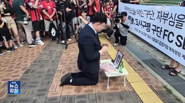 FC서울 구단을 향한 항의의 뜻을 담은 장례식 퍼포먼스 / KBS 뉴스광장