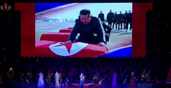 방송을 보면 북한 측 공연의 무대 배경이 되는 대형 스크린에 우크라이나가 한때 점령한 러시아 쿠르스크에 파병된 것으로 보이는 북한 군인 관련 사진이 여러 장 내걸렸다.