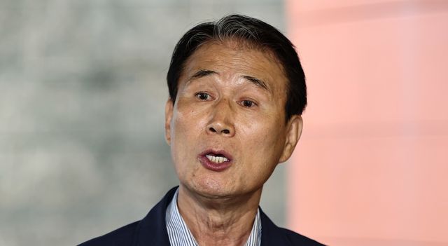 권오을 국가보훈부 장관 후보자가 서울 중구 서울스퀘어에 마련된 인사청문회 사무실로 출근하며 취재진 질문에 답하고 있다. / 뉴스1