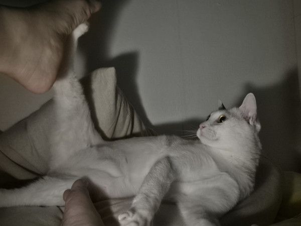 발로 삼냥이를 쓰담쓰담하다가