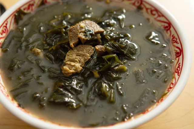 30분 이상 천천히 끓인 미역국은 미역도 부드럽고 고기도 퍼지지 않으며, 국물은 맑고 진하다. 바로 끓여 먹는 것도 좋지만, 한번 끓인 뒤 식혀 뒀다가 다시 데우면 더 진한 맛이 살아난다.