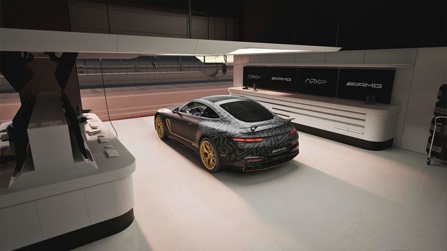 차량 외관은 APXGP 전용 리버리인 검정색과 금색의 조합으로 도색됐고, 팀 고유의 패턴이 수작업으로 적용됐다. 무광 레이스 골드로 마감한 21인치 AMG 단조 휠에는 블랙 브레이크 캘리퍼를 조합해 영화 속 가상의 F1팀인 APXGP의 상징색을 높은 수준으로 구현했다.