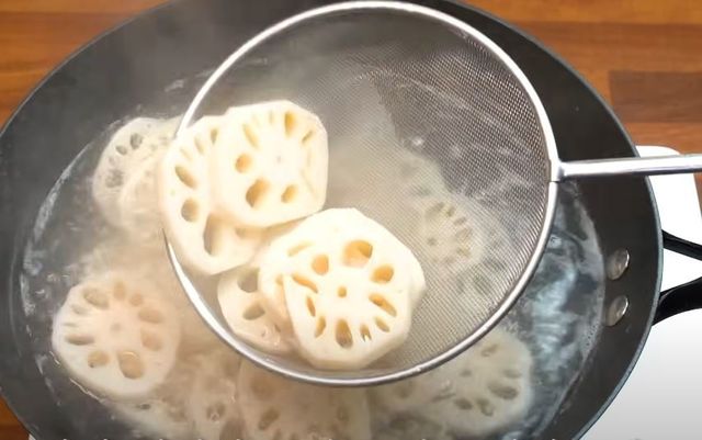 먼저 연근은 껍질을 벗기고 얇게 썬 다음, 식초를 푼 물에 10분 정도 담가 갈변을 방지한다. 이후 물에 한 번 삶아낸 후 간장, 설탕, 물엿, 식초, 물을 섞은 양념장에 넣고 중약불에서 천천히 조려낸다.