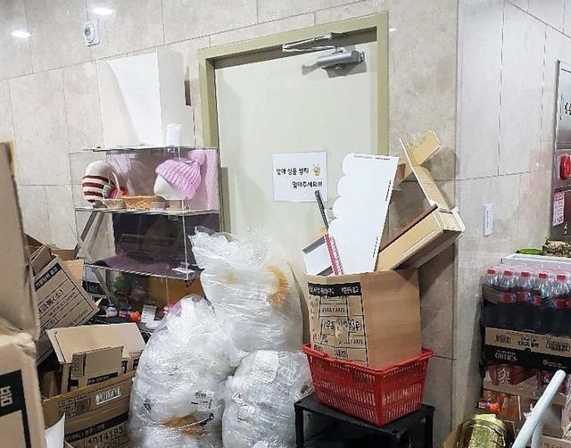 물건들로 막힌 비상문. 자료사진. / 대전시 제공