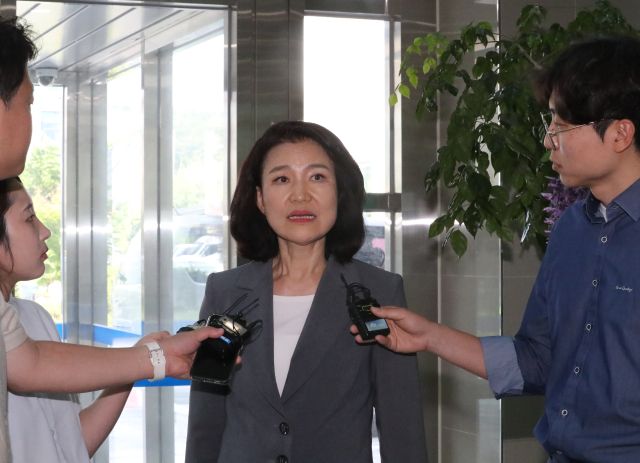 ▲대전MBC 사장 재임 시절 법인카드를 사적으로 유용했다는 의혹을 받는 이진숙 방송통신위원장이 5일 대전 유성경찰서에 출석해 기자들의 질문을 받고 있다. ⓒ연합뉴스