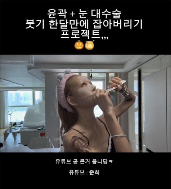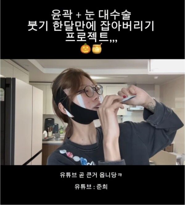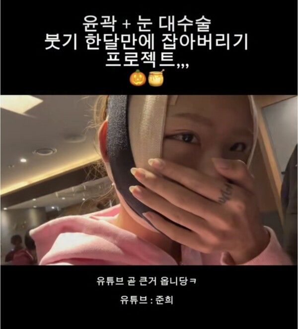 최준희는 지난 4일 자신의 소셜 미디어를 통해 "윤곽+눈+멍까지 싹 다 잡힌 거 실화냐고요(이게 성형템의 힘이라는 거지…)"라는 멘트와 함께 일상 영상을 게재했다.