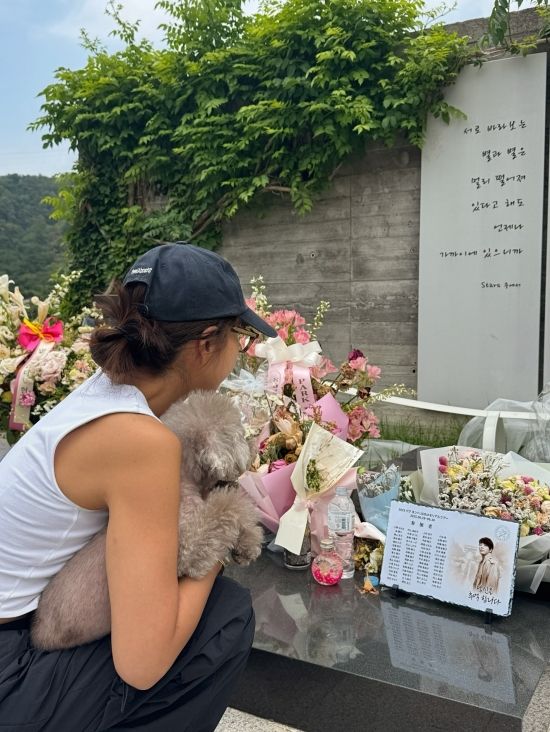 김준희, 5살 연하 남편과 故 박용하 찾았다 "늦게 와서 미안해" [★해시태그]