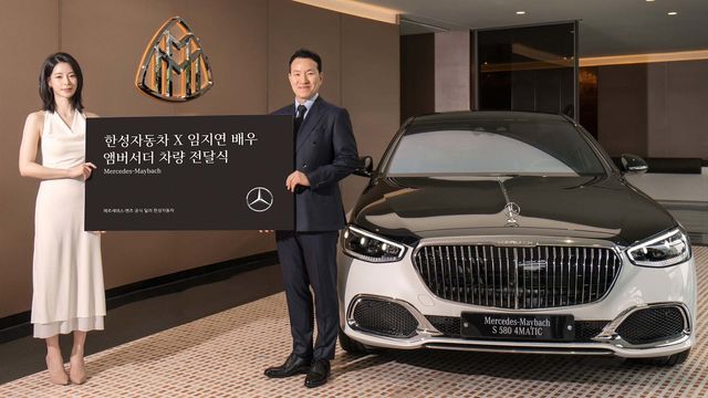 한성자동차가 배우 임지연에게 메르세데스-마이바흐 S 580을 전달하고 있다. / 한성자동차
