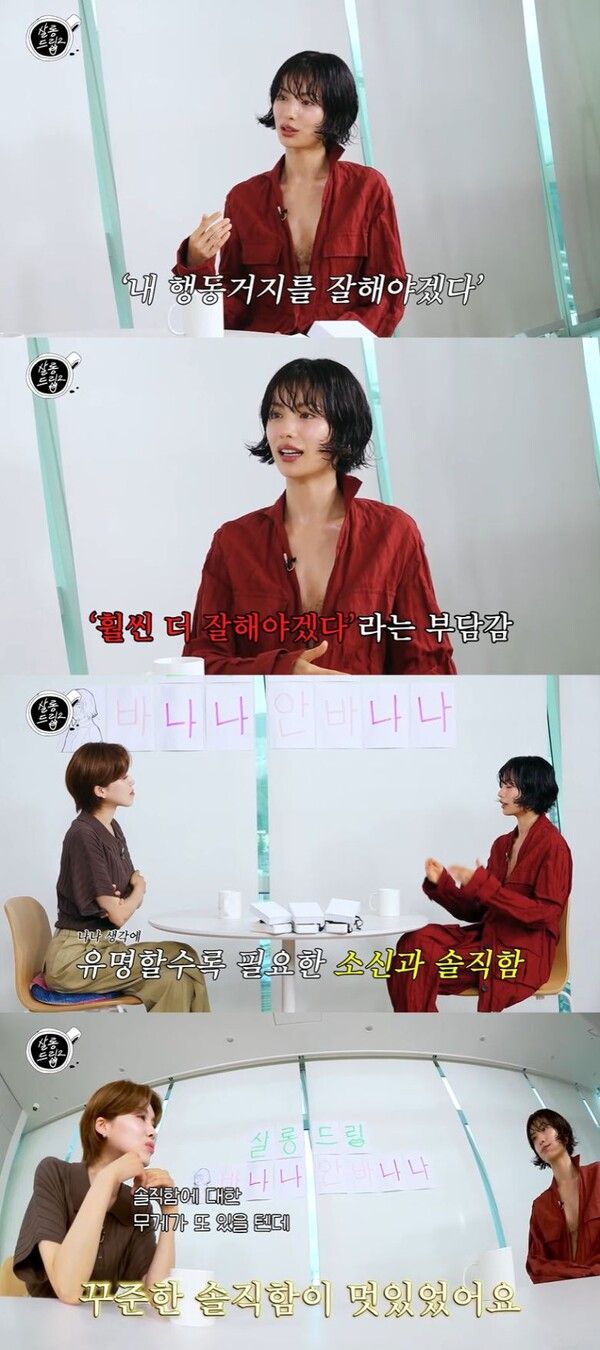 이에 장도연은 깊이 공감하며 "그래서 멋있다고 생각한 게 솔직하게 이야기하는 게 용기 있는 행동일 경우가 많다. 솔직함에 대한 무게가 있을 텐데 솔직함을 유지하는 게 멋지다"라고 칭찬했다.
