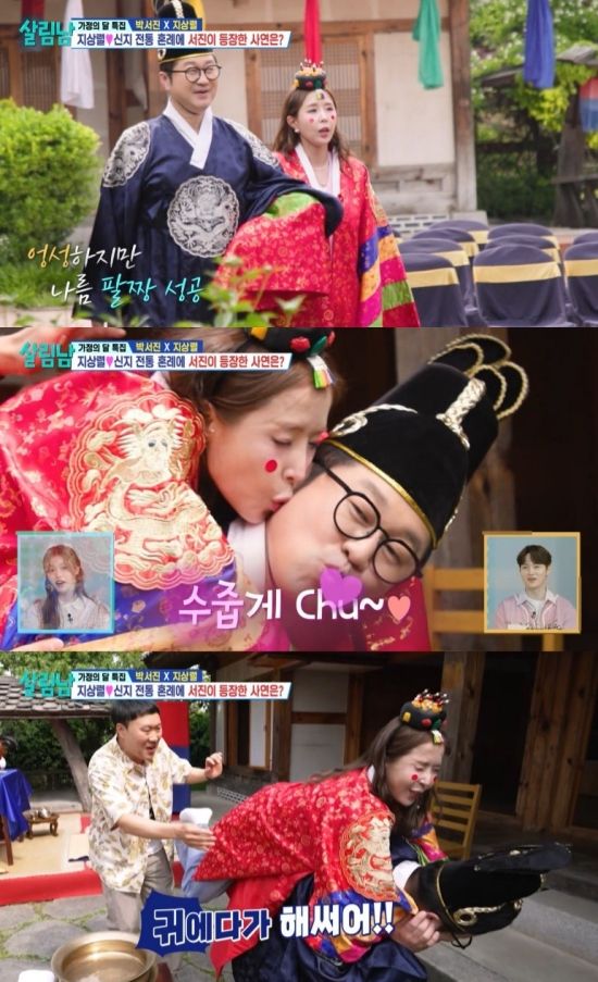 이날 지상렬을 돕기 위해 신지와 김용명, 박서진이 동행했고, 그중 신지는 혼례복까지 갖춰 입고 지상렬과 팔짱을 끼는가 하면 업힌 상태로 볼에 뽀뽀를 해 모두를 놀라게 했다.