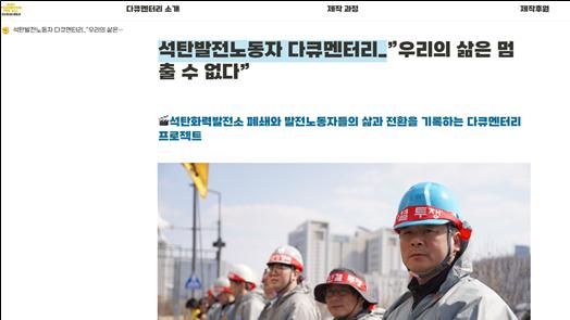 지난 해 12월부터 석탄화력발전소 폐쇄와 발전노동자들의 삶과 전환을 기록하는 다큐멘터리 프로젝트를 진행하고 있다. 올해 12월 폐쇄되는 태안화력발전소와 2026년 폐쇄에 들어가는 하동화력발전소 노동자들이 이 다큐멘터리의 주인공이다. 공공운수노조 발전비정규직연대와 녹색연합, 에너지기후정책연구소, 새알미디어가 공동제작을 맡았고 공공운수노조가 제작후원으로 참여했다.