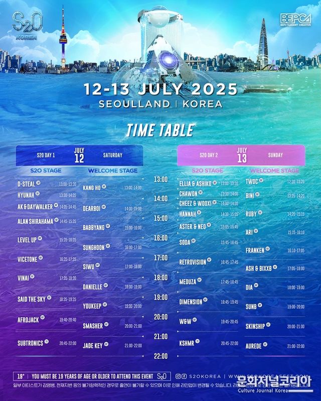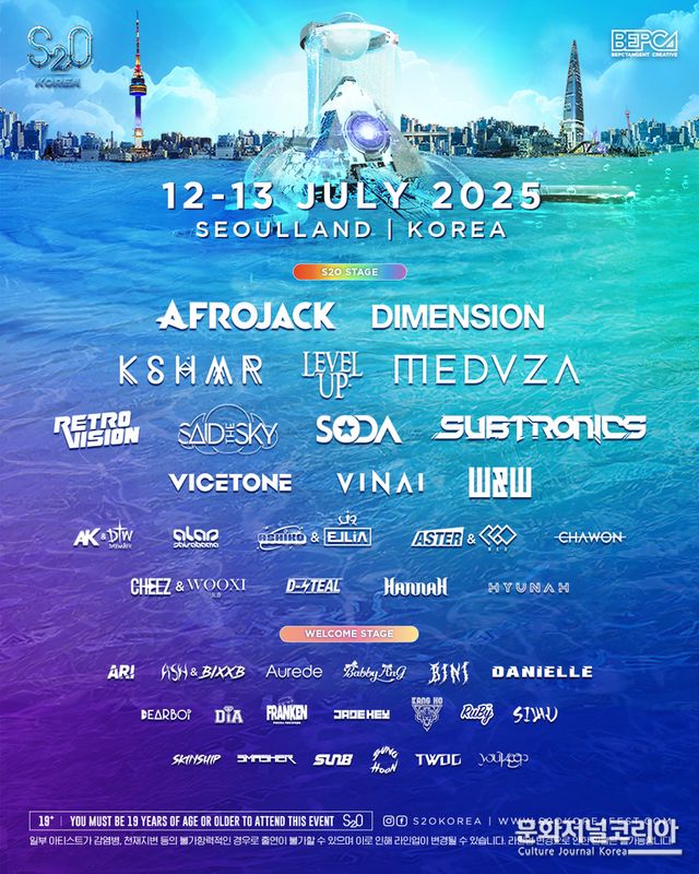 문화저널코리아 김영일 기자 | 아시아 대표 워터 뮤직 페스티벌 ‘S2O KOREA 2025’가 오는 7월 12일(토)~13일(일), 서울랜드에서 개최된다. 작년 4만 명을 동원하며 대한민국 워터 페스티벌 시장의 새로운 전형을 제시했던 이 축제는, 올해 더욱 막강해진 아티스트 라인업으로 다시 한번 뜨거운 물폭탄을 예고하고 있다.