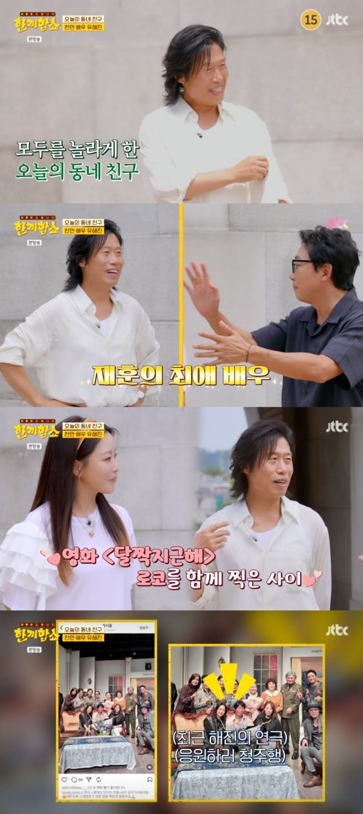 이날 '한끼합쇼'의 동네 친구로는 배우 유해진이 등장했다. 긴 머리를 한 유해진은 현재 사극을 촬영 중이며, 강원도 산골에서 촬영하느라 연락이 잘 안 된다는 근황을 전했다.