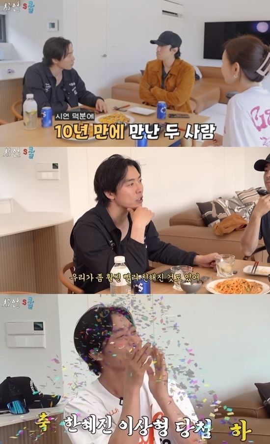 한혜진과 김재욱은 20년지기 친구이지만 이날 10년 만에 만났다고. 한혜진은 "내가 오빠(이시언)를 통해서 아니면 재욱이를 어떻게 보겠나"라고 반가워했다.