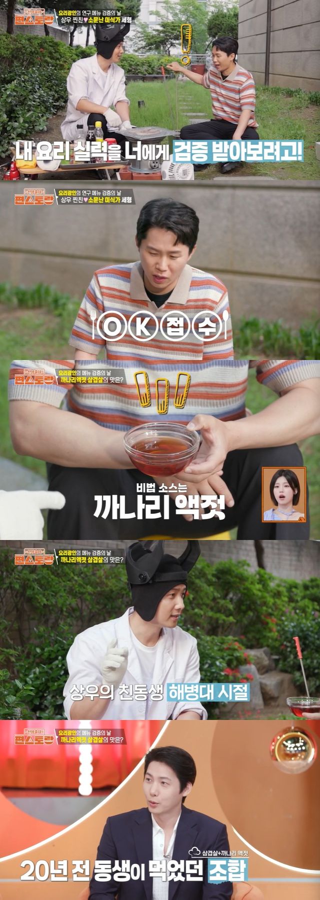 이상우는 "친동생이 해병댄데 거기서 백령도로 파견을 나갔는데 그 섬에서 이렇게 먹는다고 하더라"라며 20년 전 동생이 해준 걸 먹고 너무 맛있었던 기억을 회상했고, 이어 긴장된 마음으로 양세형의 시식 평을 기다렸다.