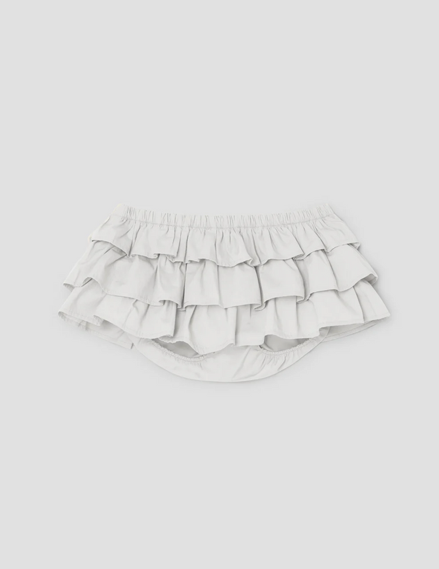 힙 라인을 따라 동그랗게 올라가는 귀여운 실루엣의 쇼츠. 탄탄한 화이트 코튼에 프릴 장식, 빈티지 리본 디테일을 더해 사랑스러운 포인트를 더했어요.