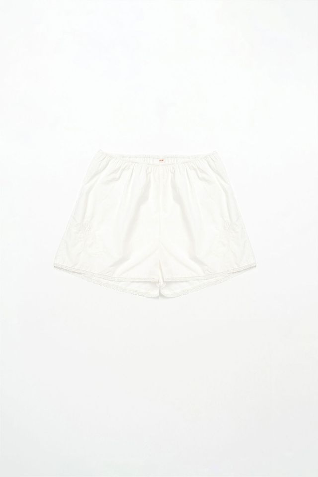 밑단이 좁아지는 블루머 디테일의 쇼츠. 자수 디테일로 정교하게 수놓아져 있어 여성스러운 느낌을 연출할 수 있어요.