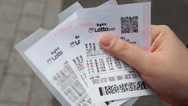 복권판매점 앞에서 한 시민이 구매한 로또를 들고 있다. / 연합뉴스