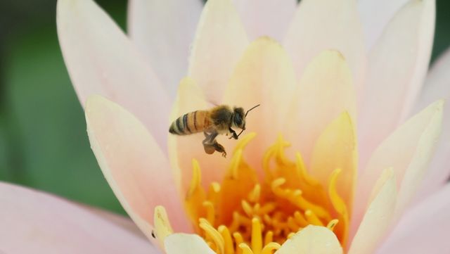 경기 의왕시 왕송호수 연꽃습지에서 꿀벌이 수련 속에서 꿀을 따고 있다. / 뉴스1
