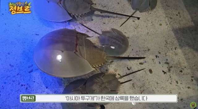 수조 안 아시아 투구게들. / 유튜브 '정브르'