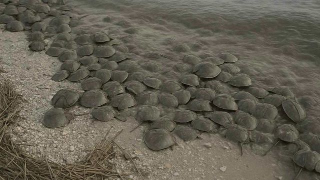 해안가에 모여든 투구게들. AI가 생성한 자료사진.