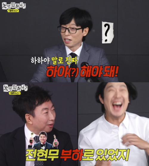 그러면서도 하하가 “형 KBS 가서 뭐했어요?”라고 박명수가 전현무, 김숙 등과 함께 출연 중인 ‘사장님 귀는 당나귀 귀’를 언급하자, 박명수는 “전현무 부하로 있었지”라는 자폭 개그를 펼치기도 했다.
