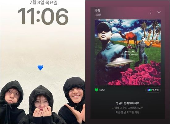 '유퀴즈'에서 빽가는 "제가 올린 사진이 제 핸드폰 배경 화면이다. 아무 생각 없이 매일 보는 건데 이렇게 딱 봤는데 '우리가 가족이구나' 싶더라"라며 "이승환 형의 '가족'이 생각났다. 샤워하면서 틀어놨는데 진짜 눈물이 날 거 같더라"라고 SNS에 담긴 뜻을 밝혔다.