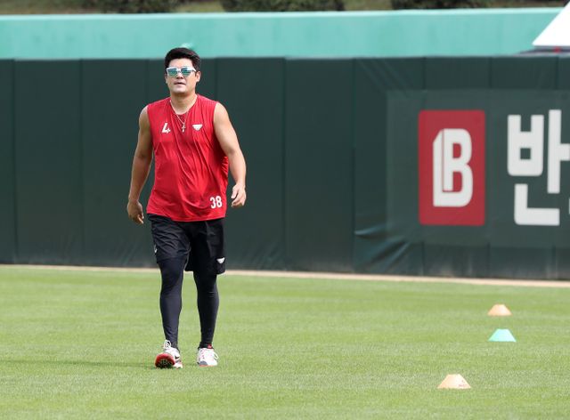 경기 전 러닝으로 가볍게 훈련하는 노경은. SSG 제공