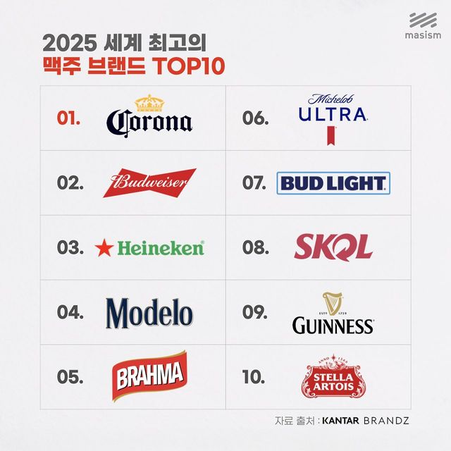 세계적인 브랜드 전투력 측정기인 칸타 브랜드Z(Kantar BrandZ)에서 발표한 세계에서 가장 가치 있는 맥주브랜드 TOP10을 모아봤다. 일단 1등이 누구냐면…