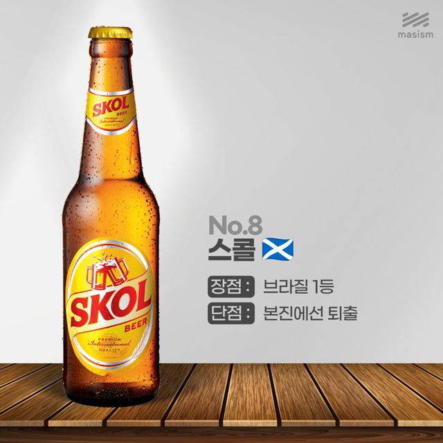 브라질의 국민맥주 브라마를 제치고 브라질 시장에서 제일 잘 팔리는 맥주다. 재미있는 것은 브라질 출신이 아니라는 점. 오히려 여러 나라를 거쳐 간 세계여행 맥주다. 시작은 스코틀랜드이고, 나중에는 영국과 캐나다, 스웨덴 벨기에의 합작회사로 갔다가, 네덜란드, 덴마크까지… 그러다 유럽에서는 찾아볼 수 없는 맥주가 되었고, 결국 브라질에 정착하였다. 집에서 쫓겨났지만 브라질의 왕이 된 타향살이 성공사례.