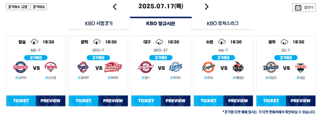 경기 개최 여부는 KBO 공식 홈페이지 및 각 구단 SNS를 통해 확인할 수 있다.
