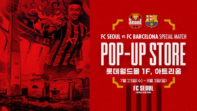 FC서울이 오는 7월 31일(목) FC바르셀로나와의 스페셜 매치를 앞두고, 팬들을 위한 특별 공간인 ‘FC서울 vs FC바르셀로나 스페셜 매치 팝업스토어’를 7월 23일(수)부터 8월 3일(일)까지 롯데월드몰 1층 아트리움에서 운영한다고 밝혔다. 이번 팝업스토어는 K리그 최고 팬덤을 자랑하는 FC서울이 해외 구단을 초청해 서울에서 치르는 이벤트 매치로는 약 11년 만에 열리는 경기로, 세계적인 명문 FC바르셀로나와의 맞대결은 오랜 시간 기억에 남을 상징적인 순간이 될 전망이다.