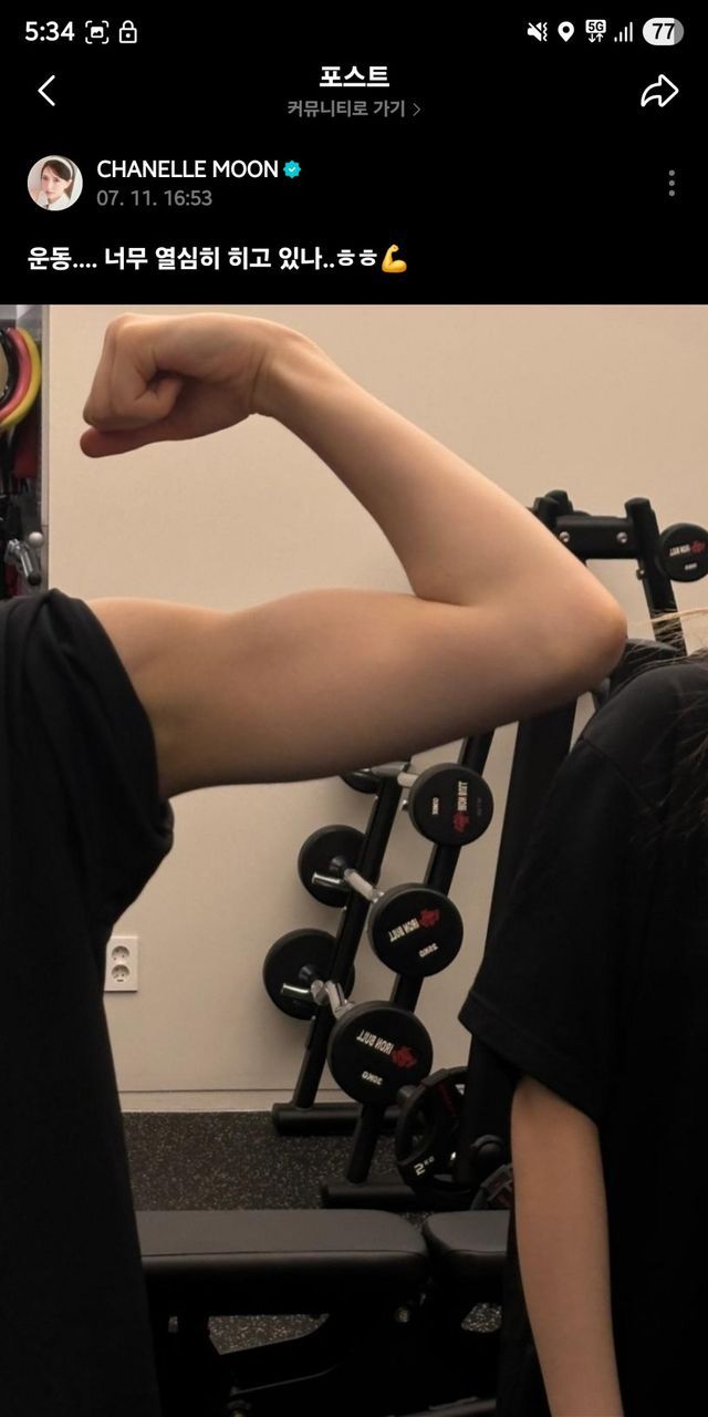 위버스라는 소통 플랫폼에 위 사진 올렸다가 엄마한테 근육 좀 줄이고 운동 살살하라고 혼남