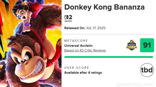 오는 17일에 발매되는 동키콩 바난자가 해외 매체로부터 호평을 받았다. 발매 전 공개된 전문가 리뷰를 토대로 한 메타크리틱 평점이 91점에 도달했고, ‘머스트 플레이’ 마크도 획득했다.