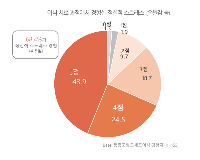 경제적 문제 역시 환자들의 삶에 심각한 제약 요인이었다. 이식 치료로 3000만 원 이상 지출했다는 응답은 전체의 40%, 치료비 부담으로 인한 심리적 스트레스를 경험했다는 응답은 63%에 달했다.