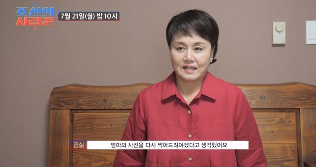 (엑스포츠뉴스 이유림 기자) 방송인 이경실이 어머니의 영정사진을 찍는다.