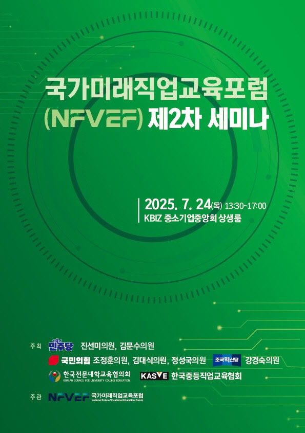 [이데일리 김응열 기자] 국가미래직업교육포럼(NFVEF)은 오는 24일 서울 여의도에서 제2차 세미나를 열고 직업교육의 혁신 방향과 국가 경쟁력 강화를 위한 방안을 공유한다고 18일 밝혔다.