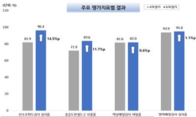 산소포화도검사 실시율이 96.4%로 4차 평가 81.9% 대비 14.5%포인트 상승해 가장 큰 폭으로 향상됐다.